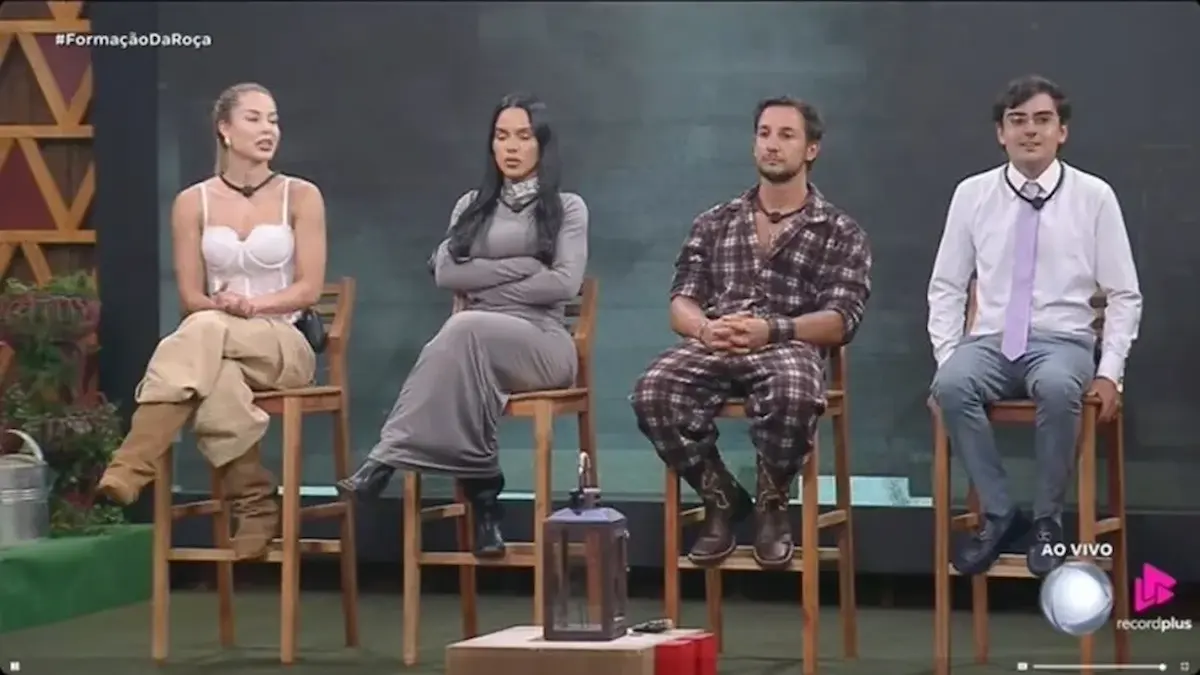 Ironicamente, após se livrar dos votos da casa com o poder branco, Dudu Camargo não foi salvo por ninguém na dinâmica final e sobrou no Resta Um, ocupando o quarto e último banquinho da Roça. A situação gerou comentários imediatos na sede, com adversários apontando o “karma” da jogada. Assim, a formação se completou com Saory (indicação), Tamires (voto), Mesquita (baia) e Dudu (resta um).