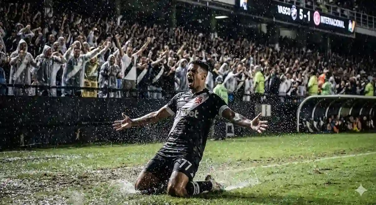 O grito de alívio que estava preso na garganta do torcedor vascaíno finalmente ecoou, e veio acompanhado de uma chuva de gols que lavou a alma em São Januário na noite desta sexta-feira. Em um confronto direto que prometia tensão, o Vasco não tomou conhecimento do Internacional e aplicou uma sonora goleada de 5 a 1, espantando a crise que rondava a Colina após cinco derrotas consecutivas. A partida, que chegou a ser interrompida por quase uma hora e meia devido a um temporal torrencial no Rio de Janeiro, teve de tudo: brilho da base, atuação de gala de Rayan e um Colorado cada vez mais afundado no pesadelo do Z4.