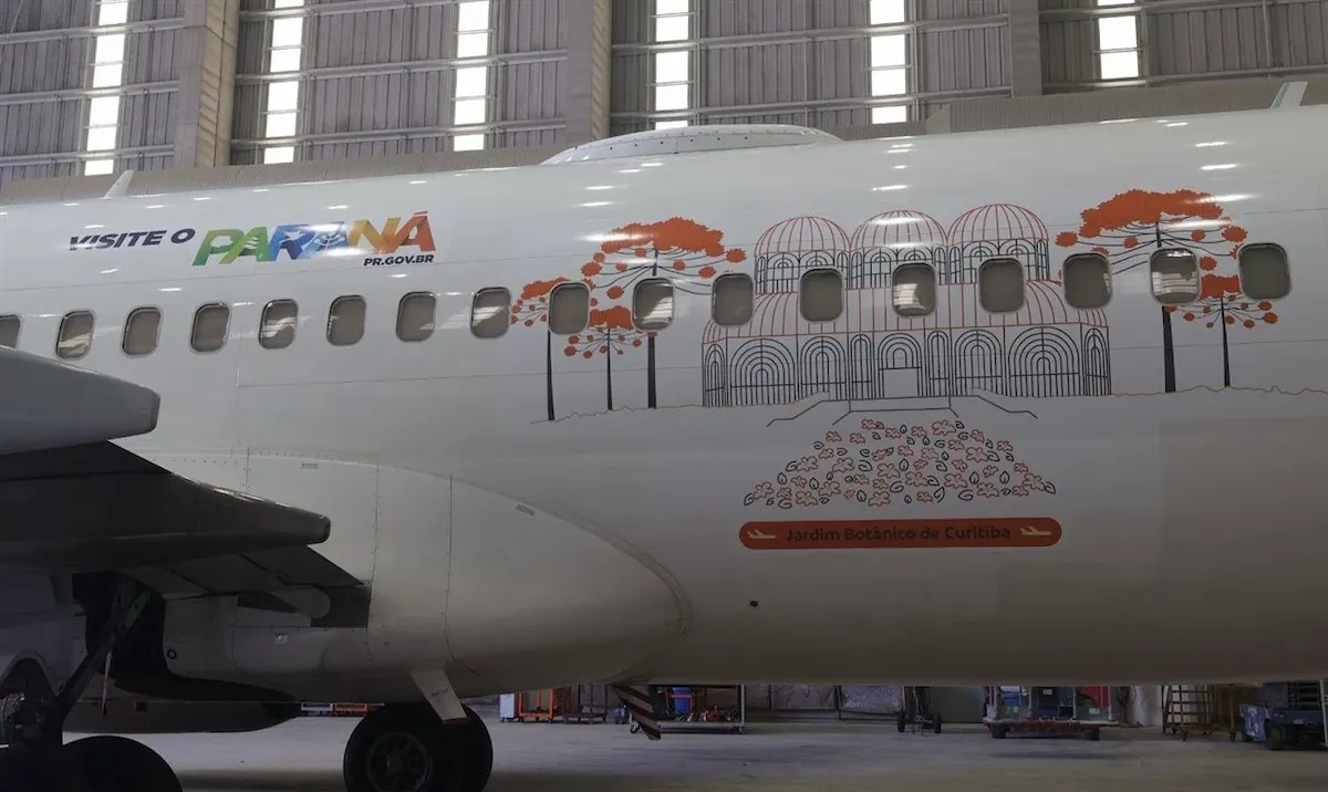 A pintura da aeronave carrega dois ícones fortes do Paraná: o Jardim Botânico de Curitiba, cartão-postal da capital, reconhecido por sua estufa de vidro, jardins e natureza exuberante; e a Araucária, árvore simbólica do estado e referência à mata atlântica tradicional da região. Esses elementos foram selecionados para representar a riqueza natural e cultural do Paraná, evocando sentimentos de pertencimento e orgulho local.